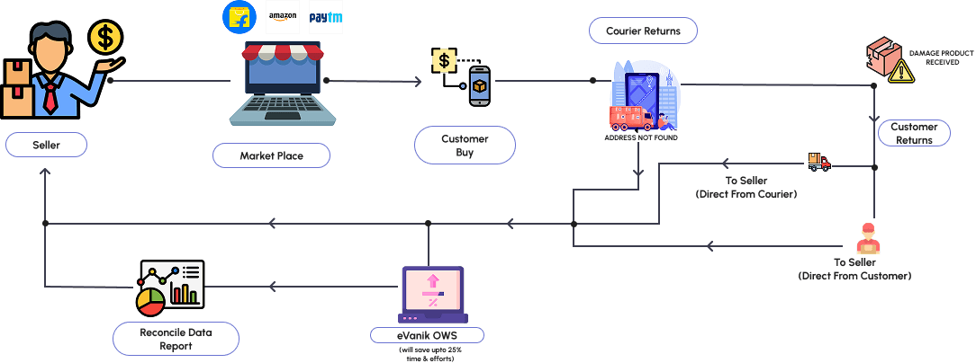 At eVanik, we have seamlessly integrated the solution with various marketplaces such as Amazon,Flipkart etc, making it easier for customers to manage returns reconciliation. It is one-stop-shop for full-cycle returns management according to Customer satisfaction